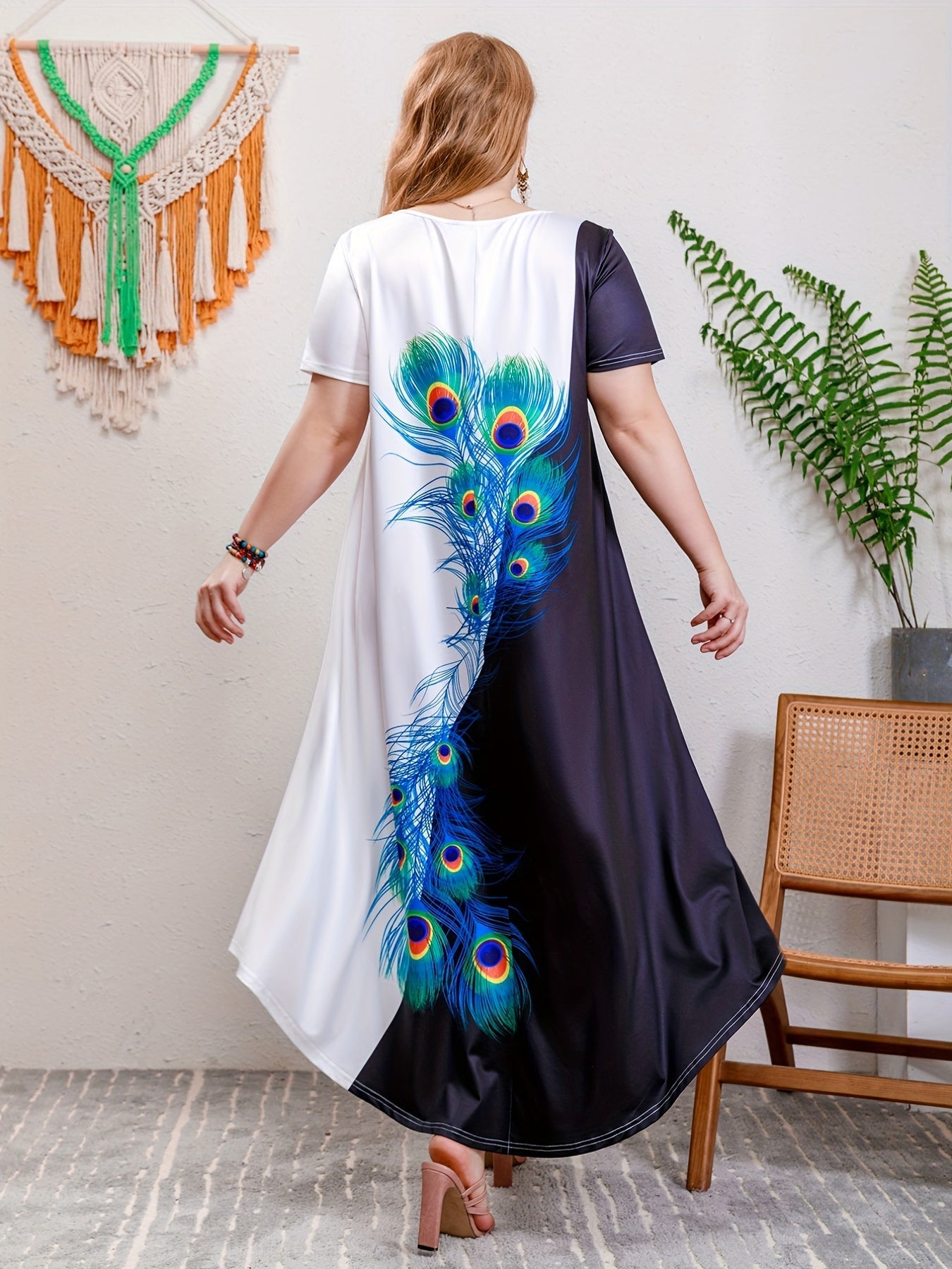 Elegant Plus Size Floral Dress with Scalloped Hem